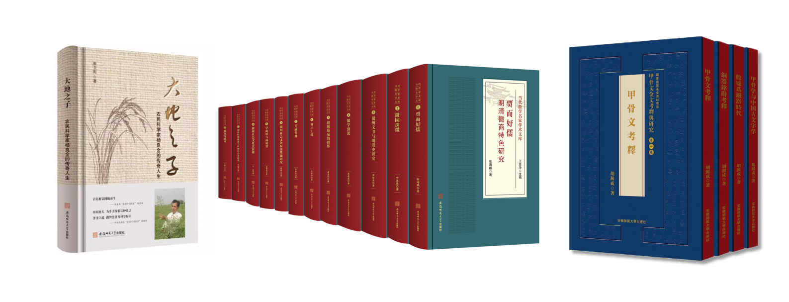 在2025年首届“安徽书籍装帧设计艺术展”中,安徽师范大学出版社的三种图书凭借独特的设计理念、精美的视觉效果成功入展。其中,《大地之子》被评为整体设计入展作品,《当代徽学名家学术文库(十二卷本)》与《甲骨文金文考释与研究(四卷本)》被评为封面设计入展作品。